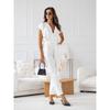 Fashion Summer Short Sleeve Jumpsuits Women New Cross V Neck Loose Plus Size Elegant Commuting Waist Bandage Outfits Casual Streetwear Clothing