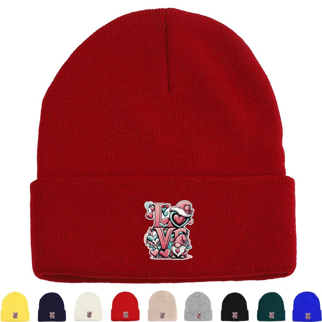 LOVE" Gnome Warm Knit Cap Beanie, Valentine's Day Woman Cap Winter Cozy Simple Gorro Knit Hat Beanie