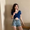 Summer New Women's Fashion Chic Sexy Solid Color Bottoming Shirt Scheming Crossover Two-wear Knitted Short-sleeved Top for Women