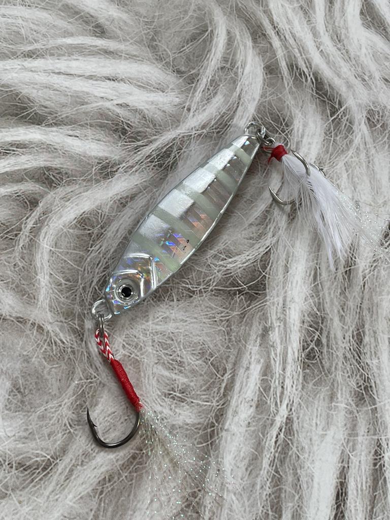 1Pcs Reflective Jig Fishing Lures Saltwater (10g, 15g, 20g, 25g, 30g, 40g, 60g) Tuna Bass Silvery Lures Feather Tail Bait