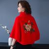 Autumn and Winter Warm Little Cloak Fashionable and Versatile Cape Jacket Women's Round Neck Embroidered Top