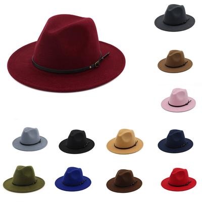 Classic British Belt Buckle Wool Fedora Hat Men Women Imitation Woolen Winter Felt Hats Fashion Jazz Hat Chapeau