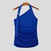 INCERUN Men Halter Irregular Neck Sleeveless Tops Solid Color Ruffled Tanks