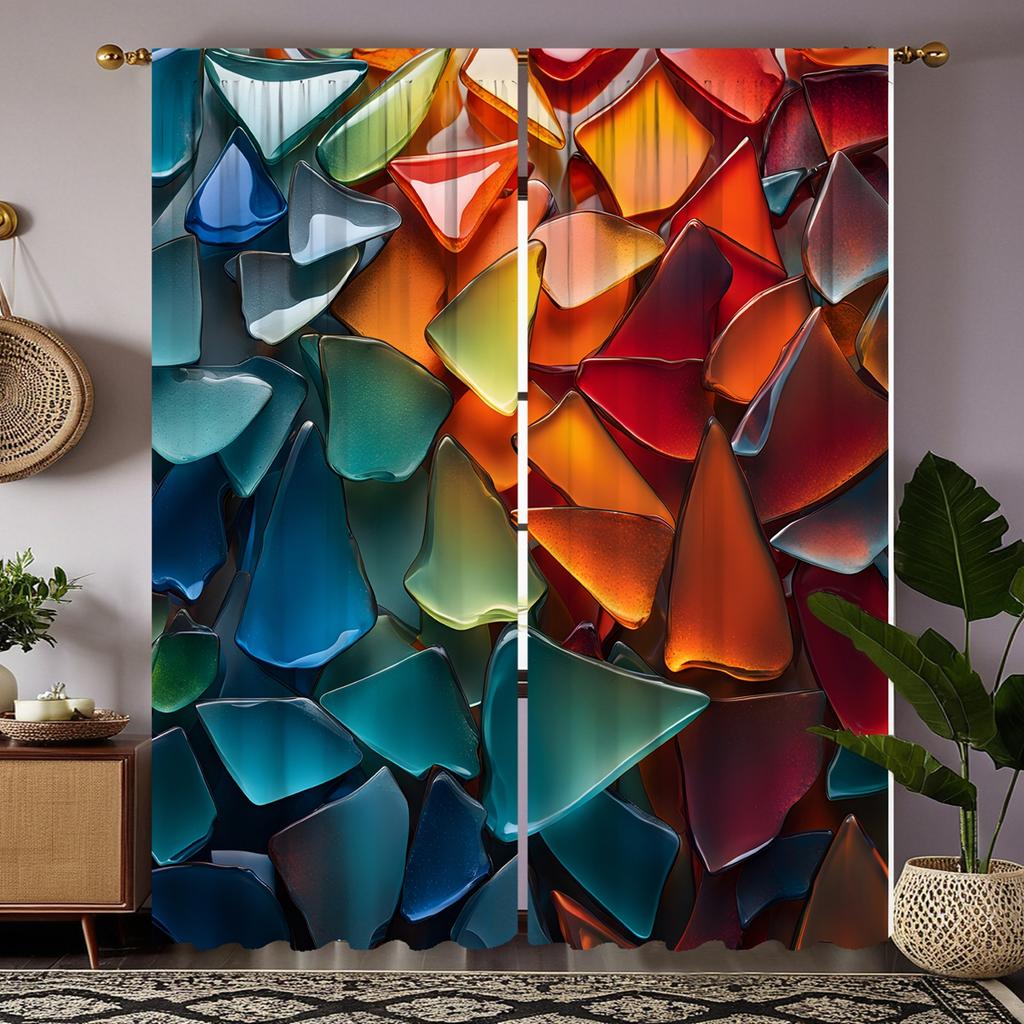 2pcs HD Colorful Glass Art Deco Curtain Color System Digital Printed Curtain Home Decoration Style Decoration Living Room Bed