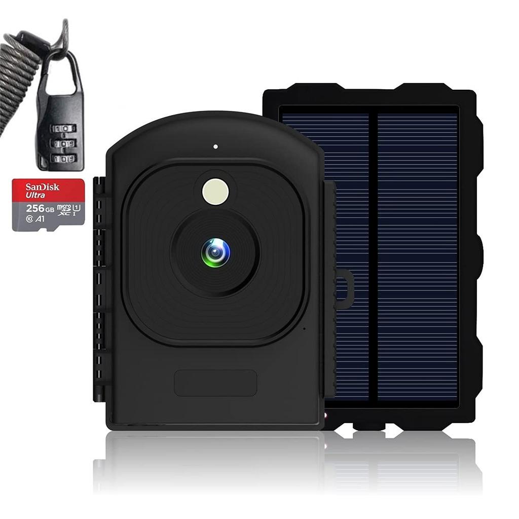 [All-in-one package] Product body, solar panel with built-in rechargeable battery, MicroSD card (256GB), fixtures (4 types), screw anchor set for fixtures, Japanese instruction manual