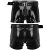 Men Latex Boxer Shorts Hot Pants Bar Disco Nightclub Performance Costume Hot Shorts with Waist Belt
