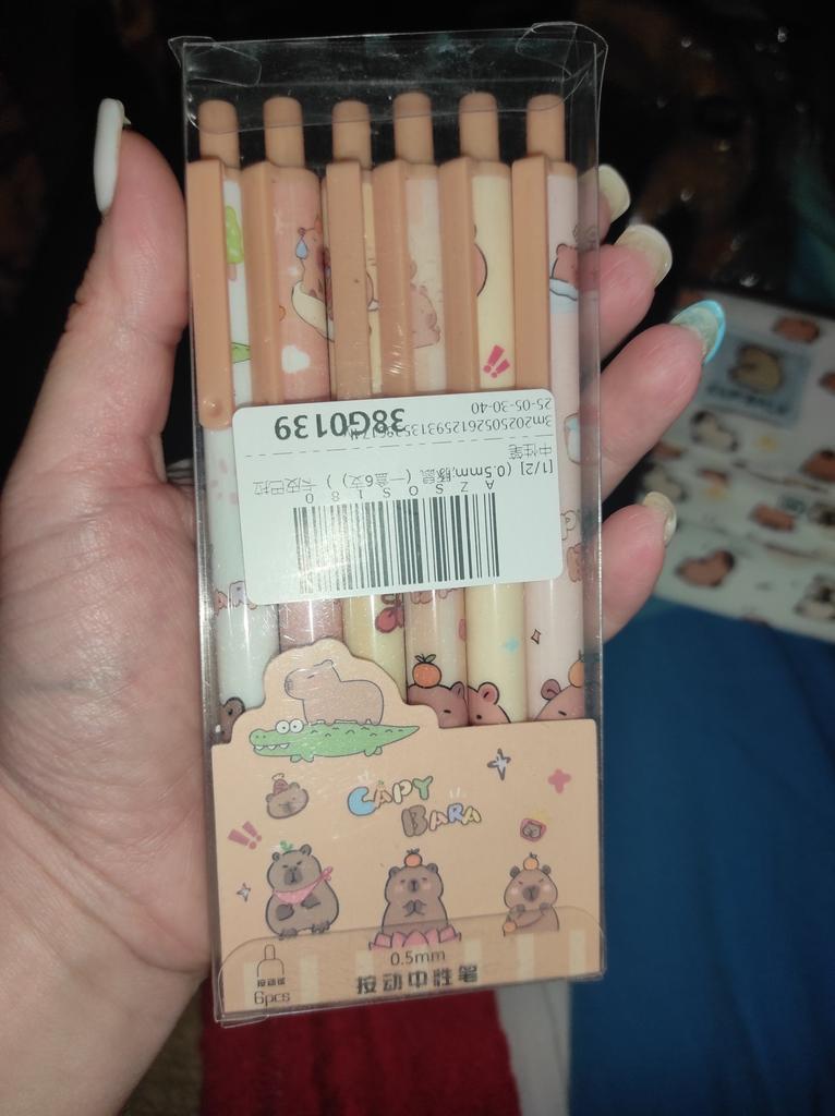 6Pcs Kawaii Cute Capybara Gel Pen Quick-Drying Writing Smooth Pen Cartoon Pressing Neutral Pen School Supplies Stationery