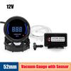 52mm Universal Gasoline Car Digital Vacuum Meter Sensor-1~0 Kpa Smoke Lens Blue LED Vaccum Gauge Black With Warning Light 12V