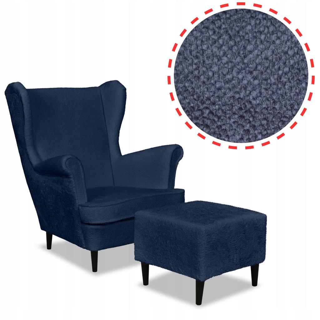 Bella Wing Chair with Footstool Scandinavian Family Meble Navy Blue