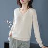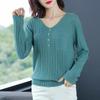 Spring Autumn Women Korean Fashion Elegant Simple Solid Basic Knitwears Female Casual V Neck Long Sleeve Slim Pullover Tops