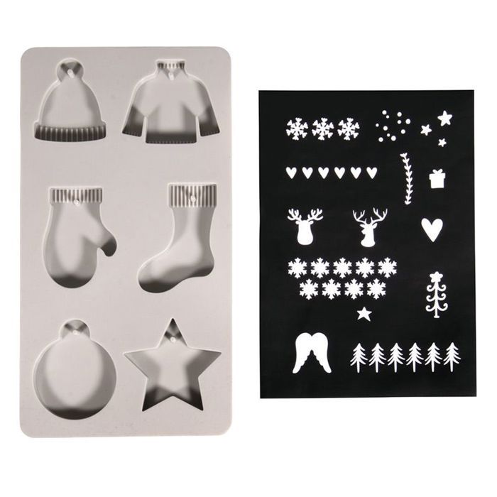 Silicone Mold 6 Christmas Shapes + A5 Stencil