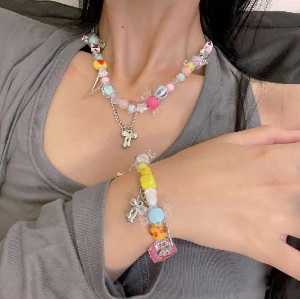 Candy Sweetheart: Trendy Colorful Beaded Necklace & Bracelet for Women