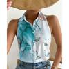 Women's Summer Casual Fashion Strapless Sleeveless Abstract Print Shirt