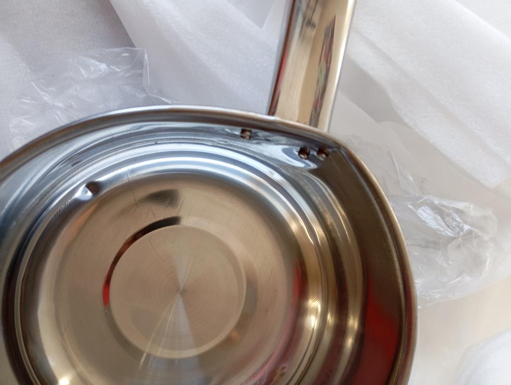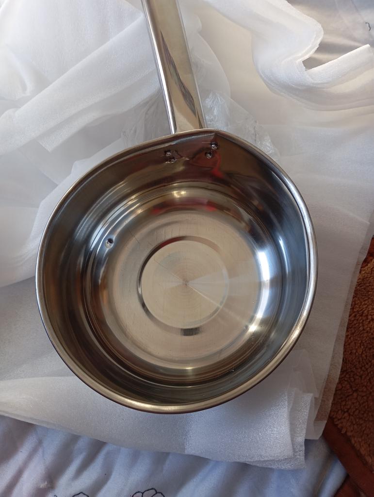 I was so looking forward to this order, but I am very disappointed. The ladle is heavily deformed, and it leaks at the handle attachment point. In short, money thrown to the wind.