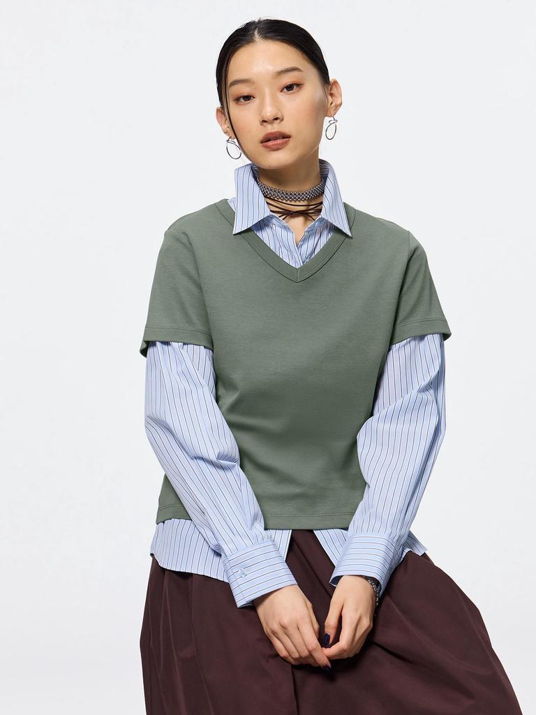 The GU by Uniqlo Cotton Smooth V-Neck T+EC features a smooth fabric that is soft and comfortable against the skin. The sleek V-neck design beautifully accentuates the décolletage, allowing for versatile styling options, both as standalone wear and layered under other pieces.