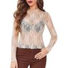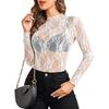 Women's Mesh Top Long Sleeve Mock Neck Sheer Blouse See Through Floral Lace Tops