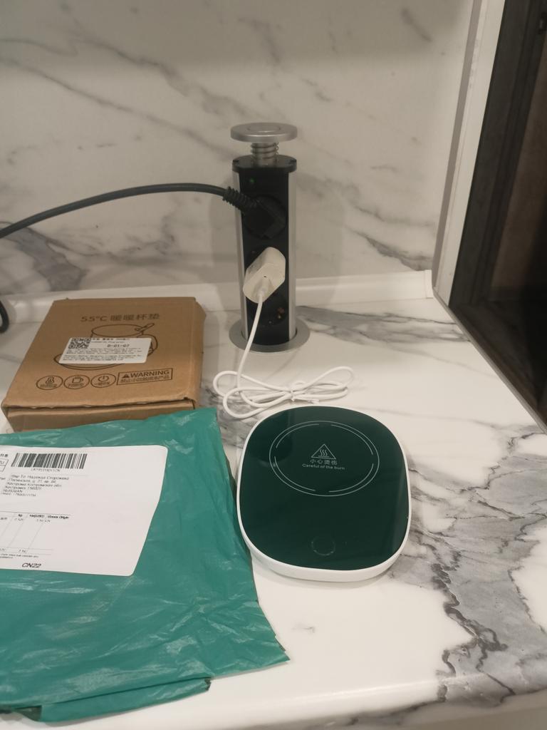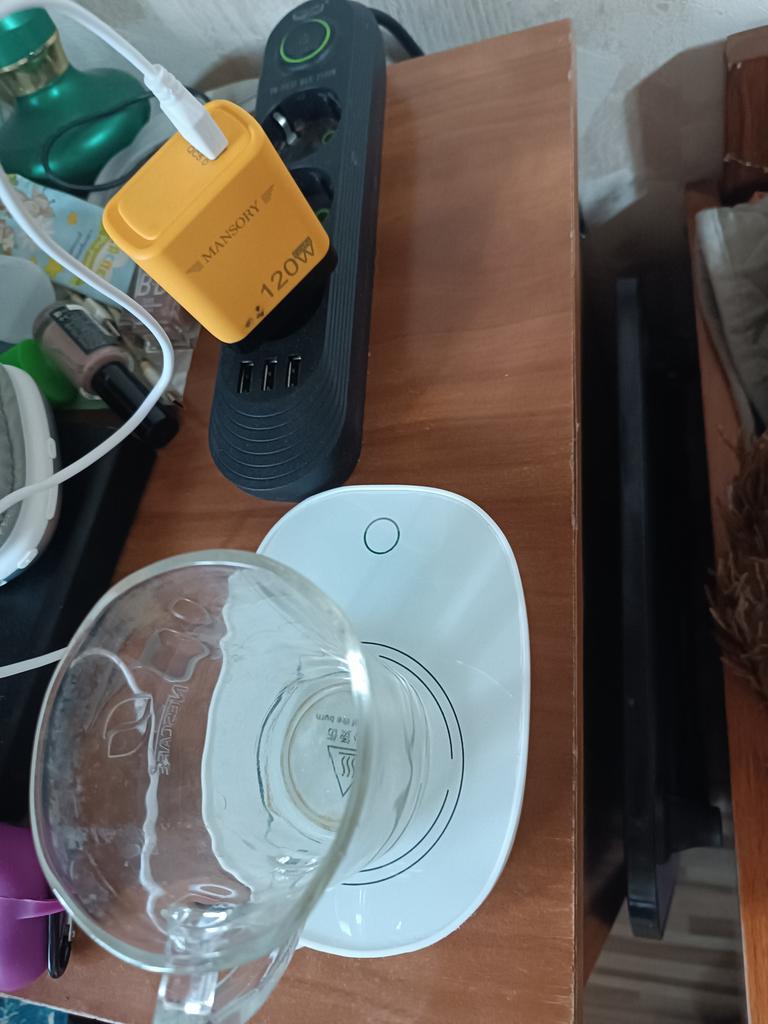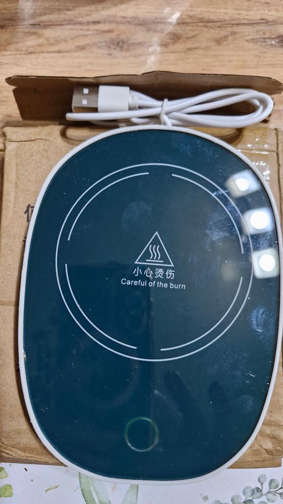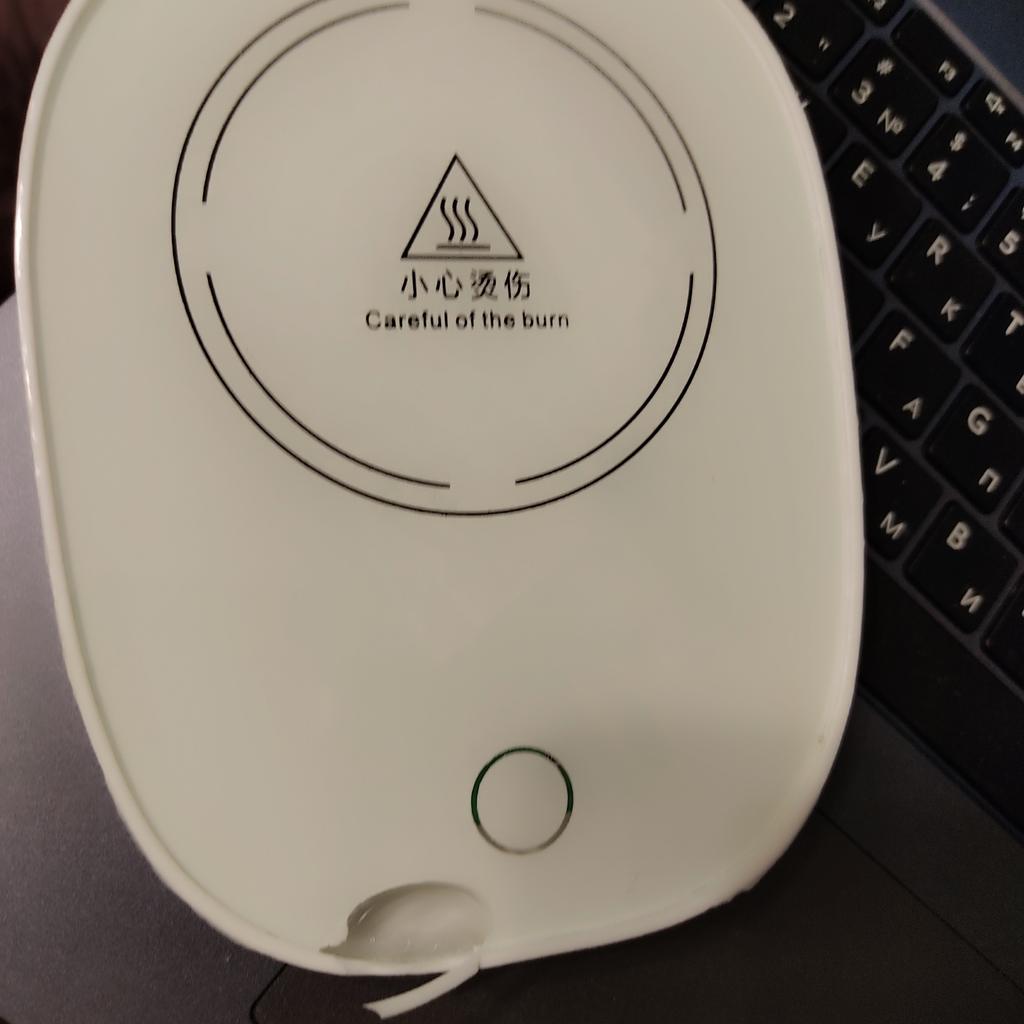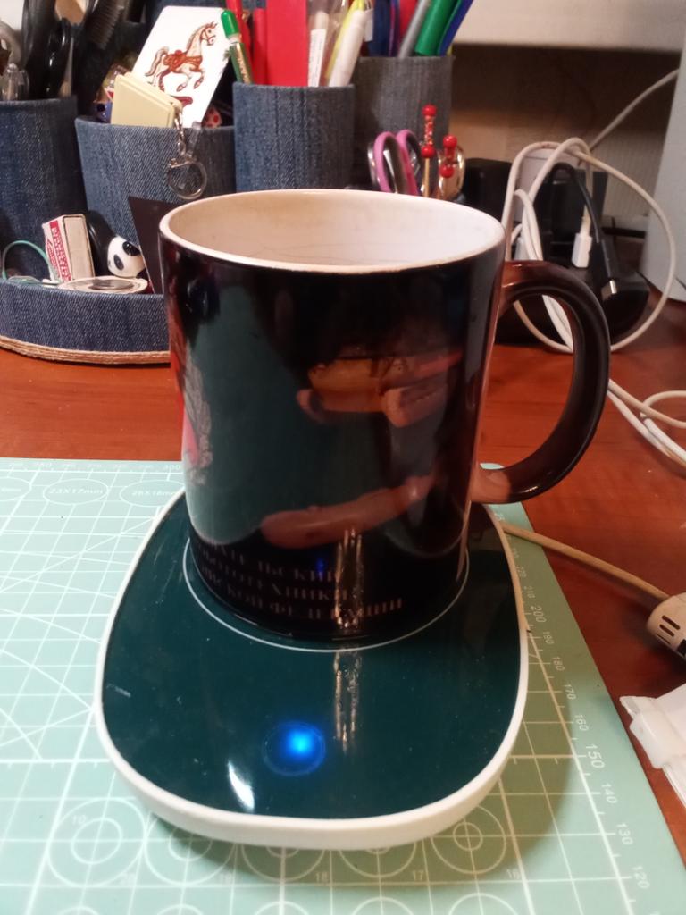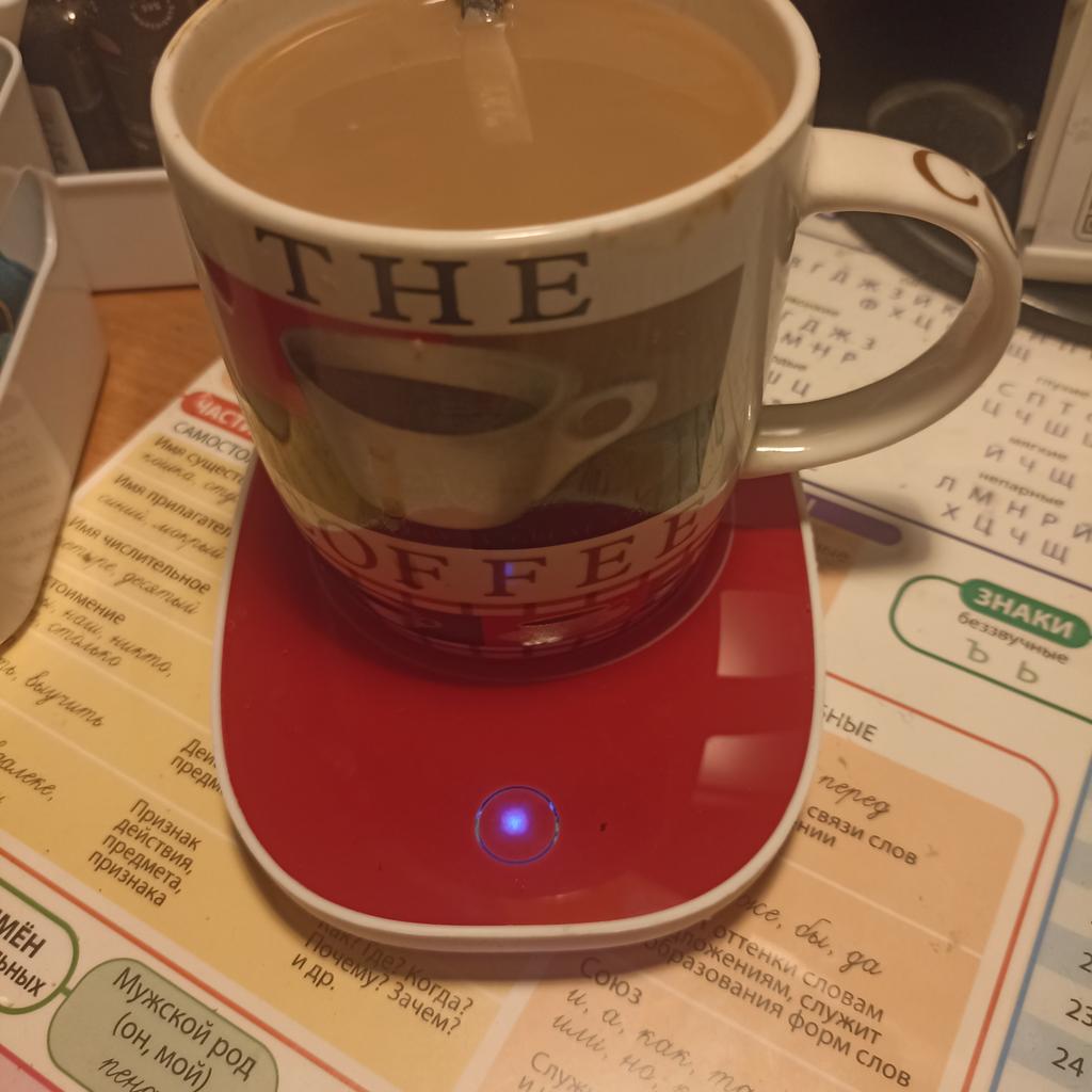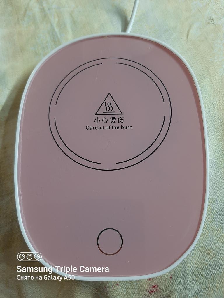Does not heat up to 55 degrees, maximum 38, and that only if the bottom of the mug is very thin. When switched on, the light barely shines, just a dot, and it is shifted from the center, probably the LED is soldered crookedly and is old. The second time it doesn't switch on at all.