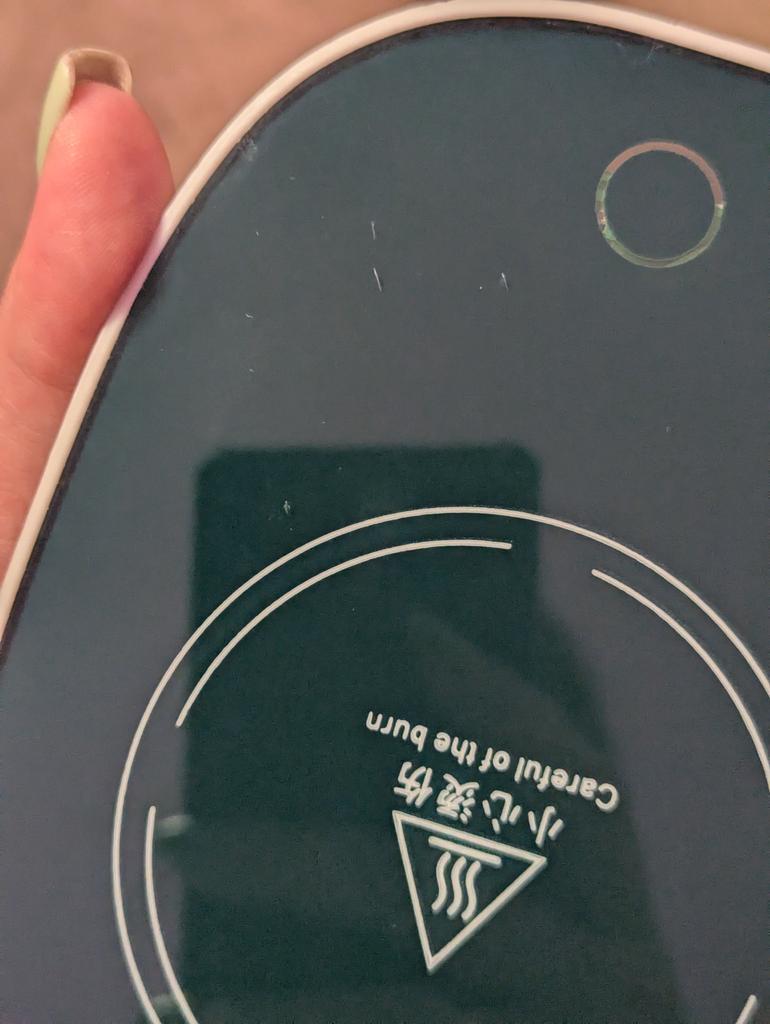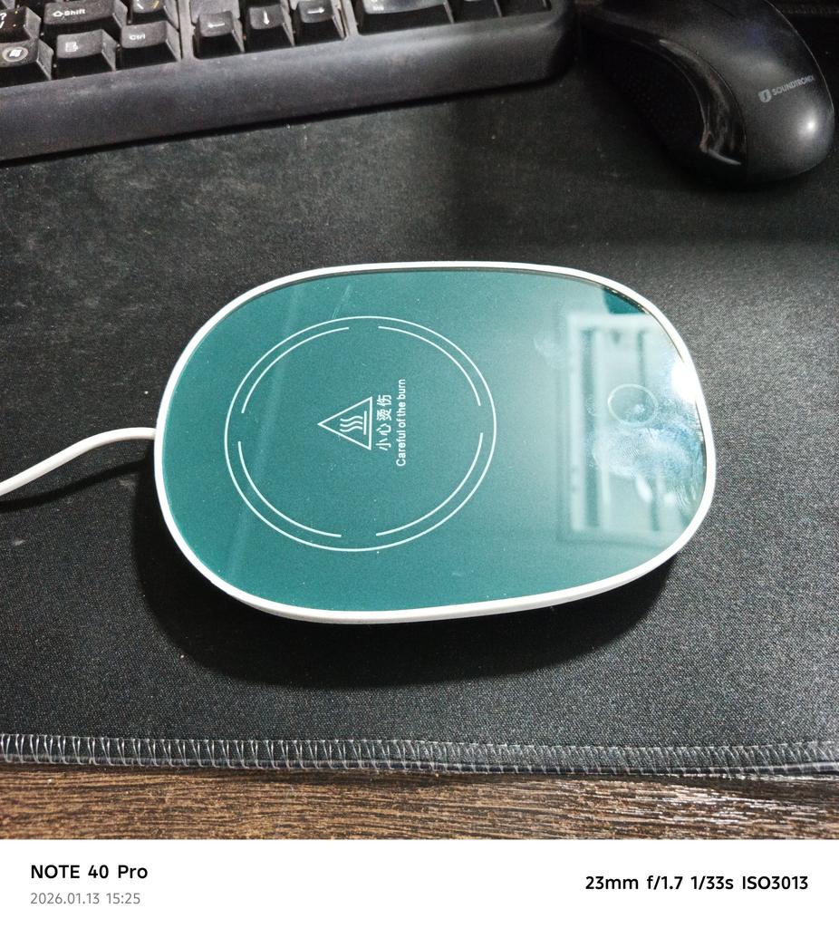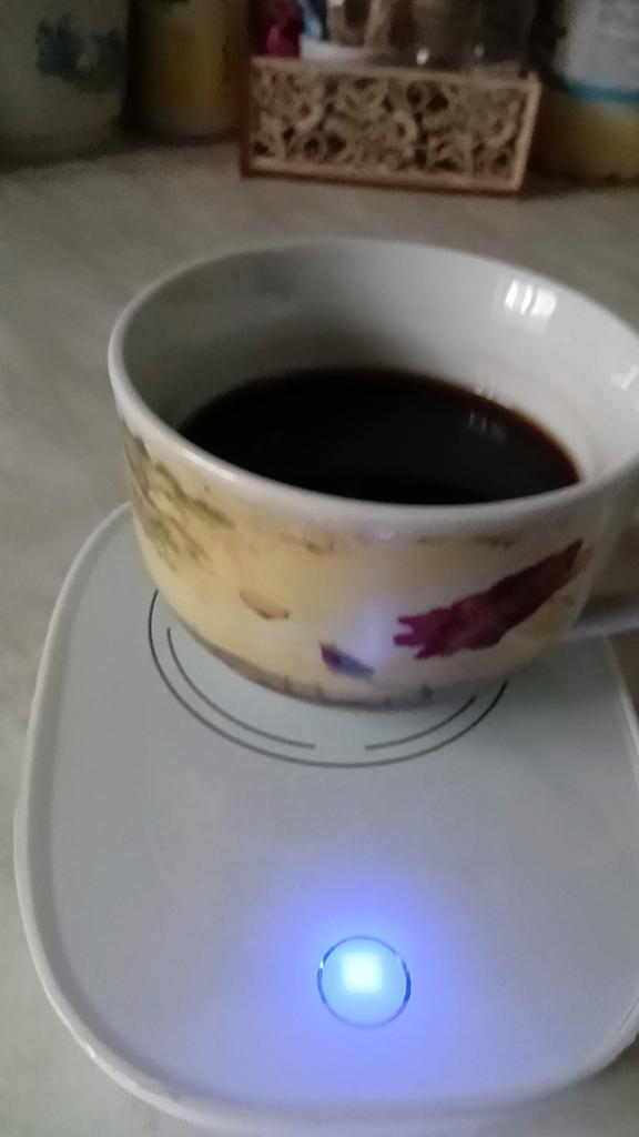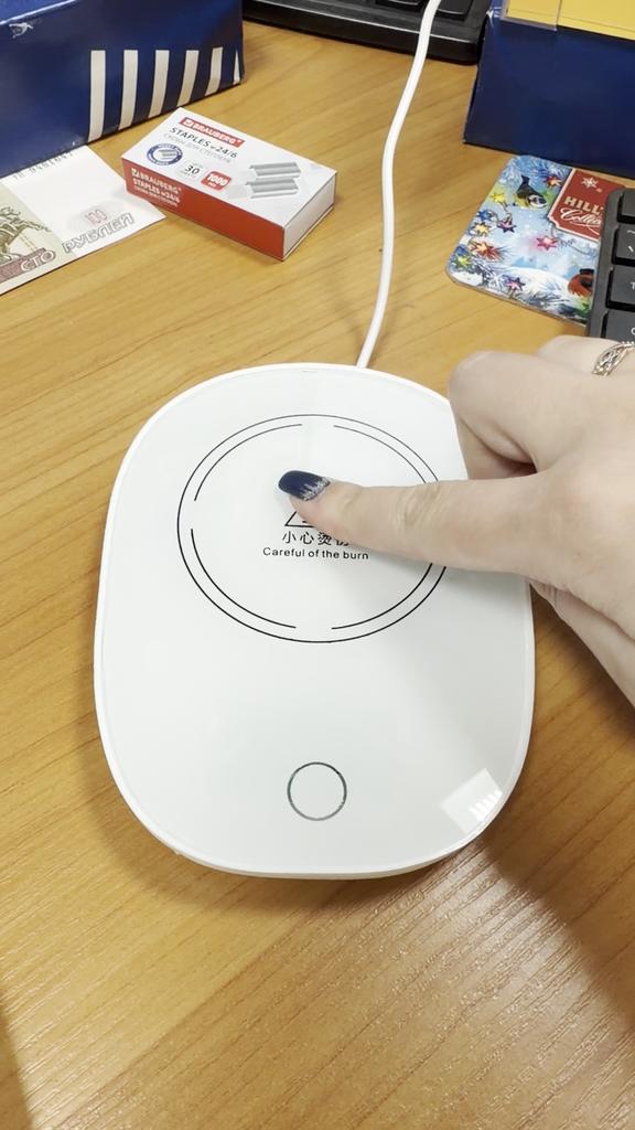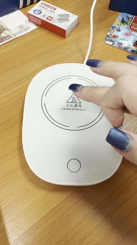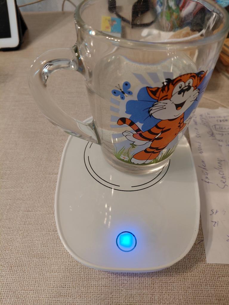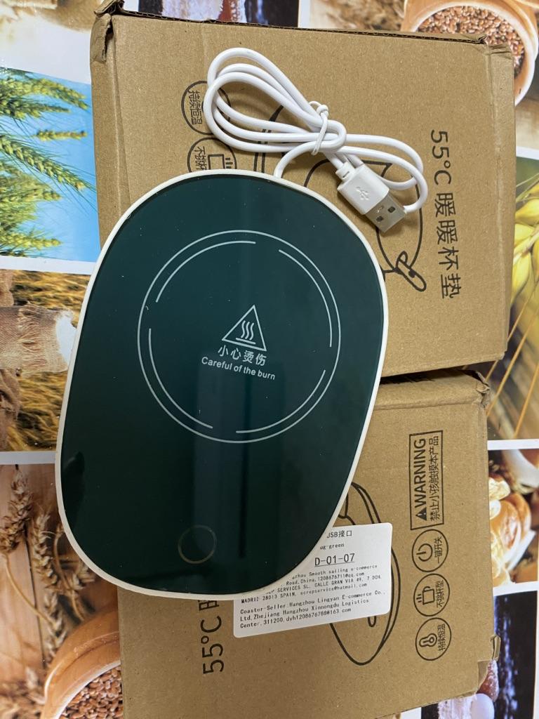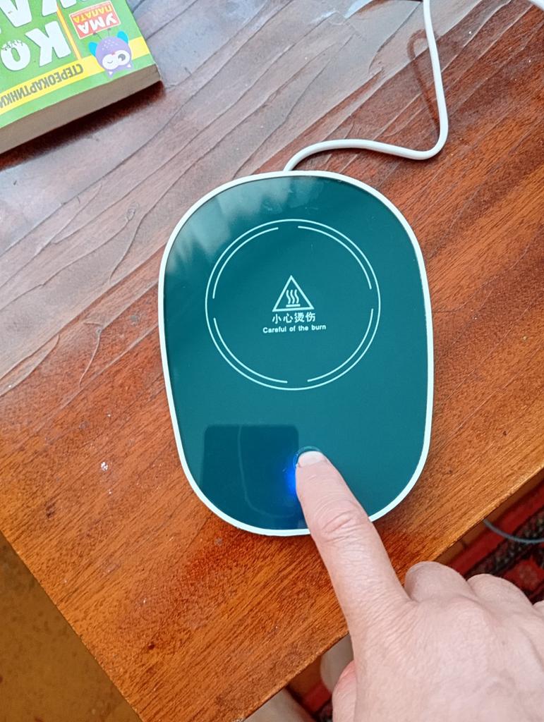 Does not heat up to 55 degrees, maximum 38, and that only if the bottom of the mug is very thin. When switched on, the light barely shines, just a dot, and it is shifted from the center, probably the LED is soldered crookedly and is old. The second time it doesn't switch on at all.