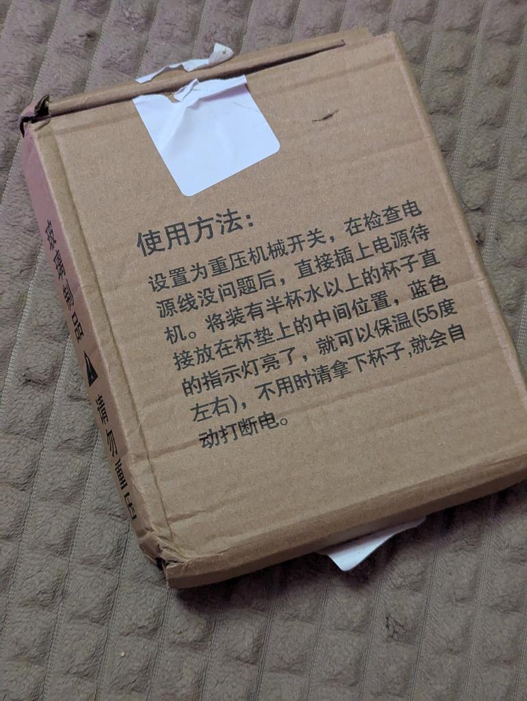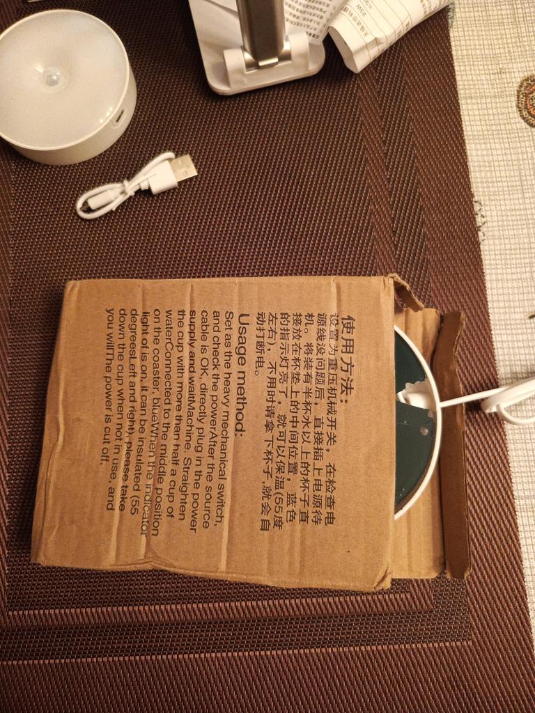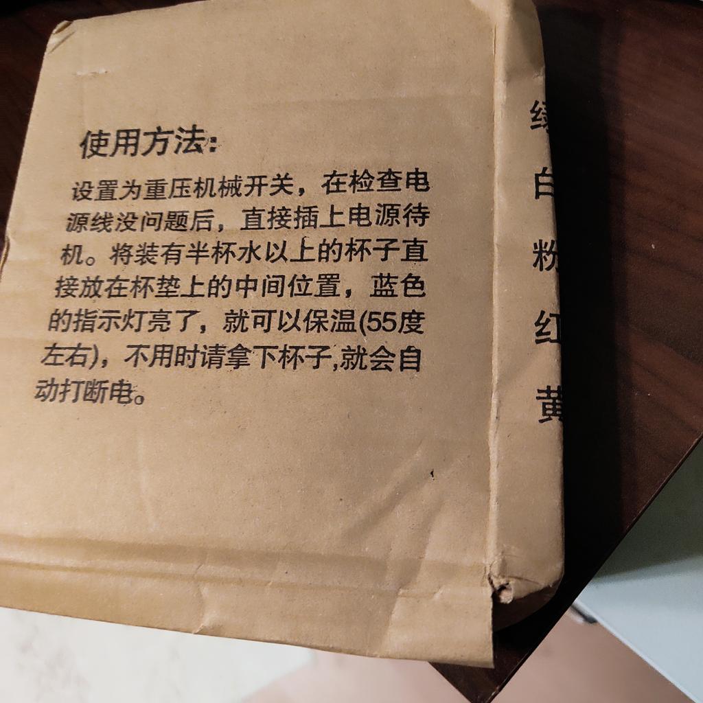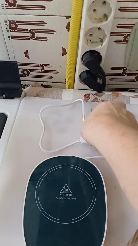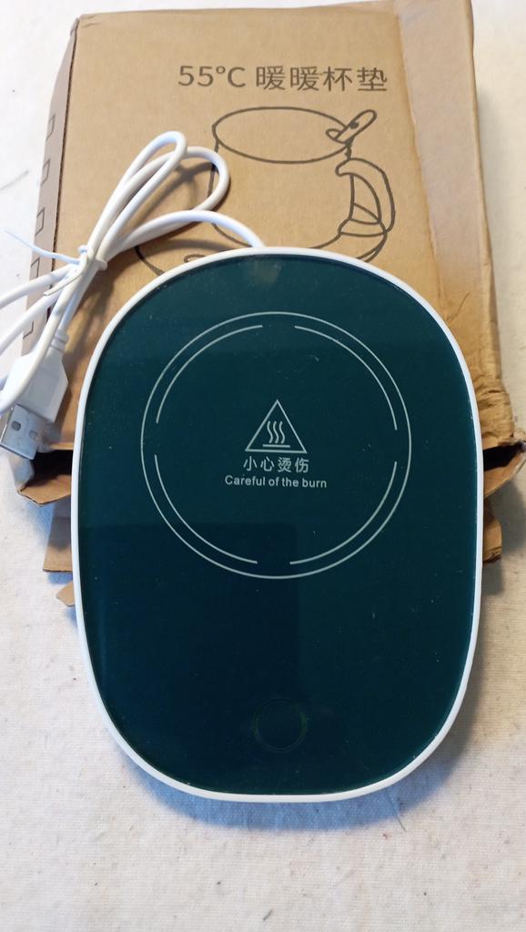 Received water warming stands for coffee or tea, no plug, the end of the wire is like a charger