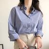 Fashion New Long Sleeve Blue Striped Shirts Women Summer Simple Elegant Loose Women's Blouses Office Lady Tops Button Up Shirt Female Clothing 26134