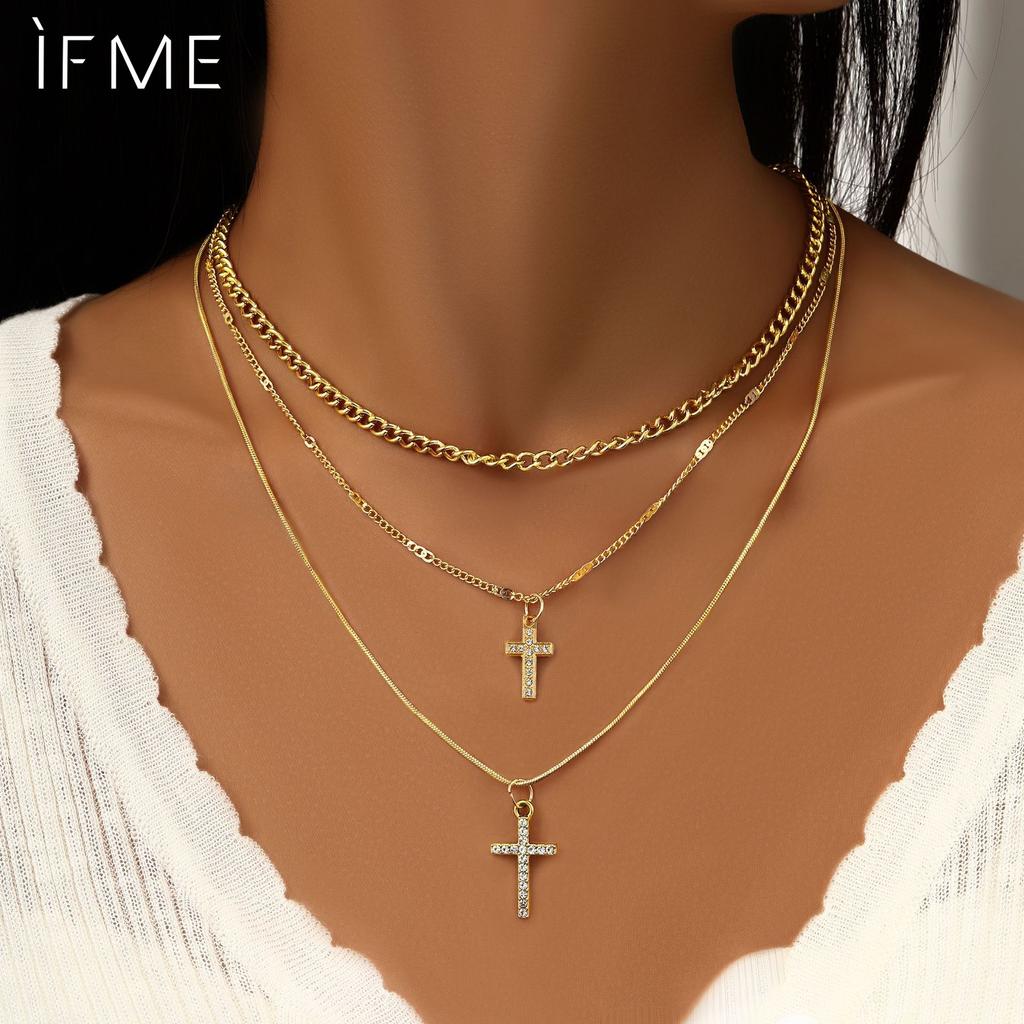 iF ME Cross Pendant Necklace for Women Charms Fashion Bohemia Gold Color Clavicle Chain Female Vintage Jewelry Trendy Gifts