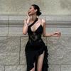 Ladies Spice Street Irregular Design Lace Patchwork See-through Backless Dress