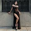 Women's Fashion Sexy Spice Mesh Perspective Slim-fit One-line Shoulder Slit Dress