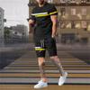 Fashion Men's Tracksuit 2 Piece Set Summer Stripe Sport Hawaiian Suit Short Sleeve T Shirt and Short Casual Fashion Man Clothing