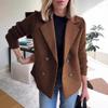 Women's Solid Color Long-sleeved Casual Wool Suit Collar Jacket
