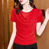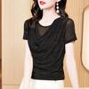 Short-sleeved T-shirt Women's Summer Dress Design Sense Irregular Bright Silk Shirt Foreign Style Small Top