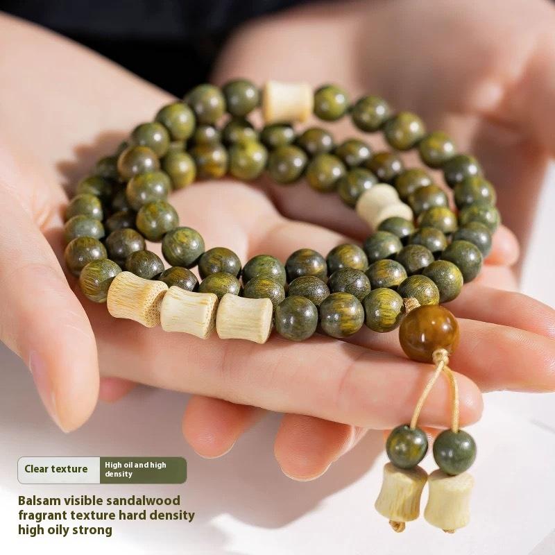 Chinese Green Sandalwood Multi-circle Bracelet Female Wenwan Sandalwood Bead Holding Rosary Male