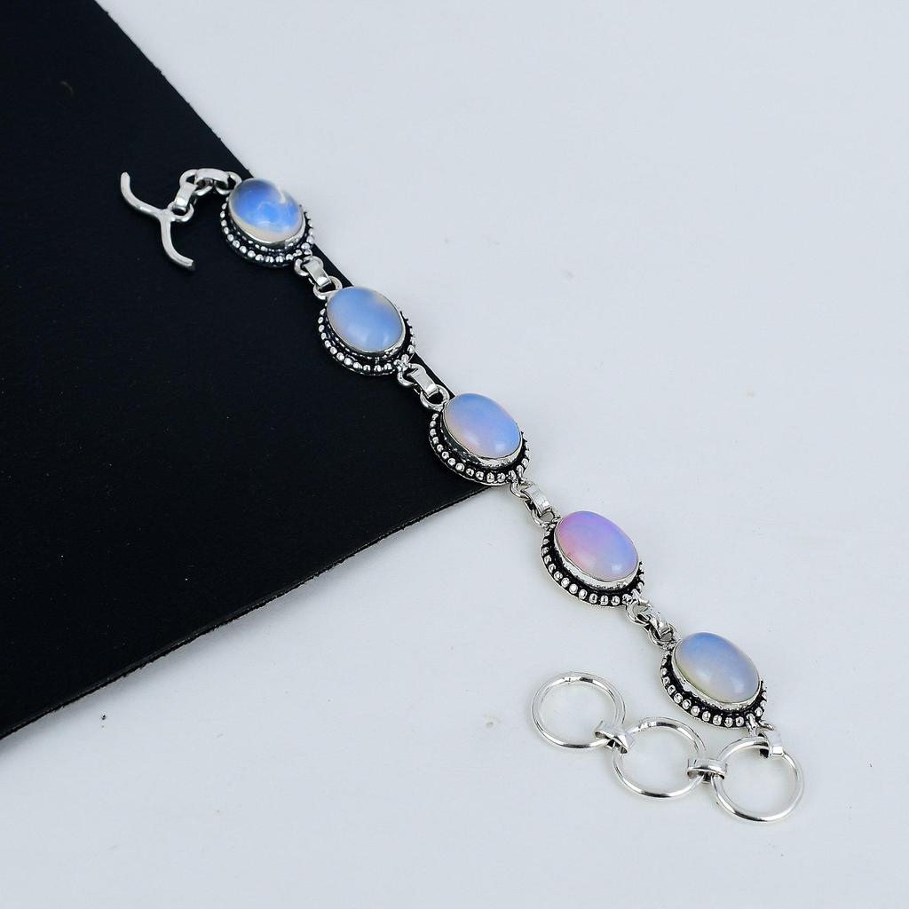 Dainty Milky Opal Gemstone Handmade 925 Sterling Silver Bracelet, Milky Opal Bracelet For Wife , Unisex Bracelet Gift For Her