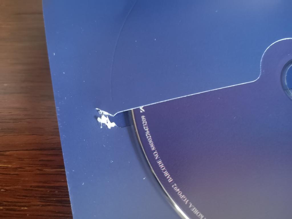 It's bent and it shows on every page inside, at least the photocards and the CD are fine.