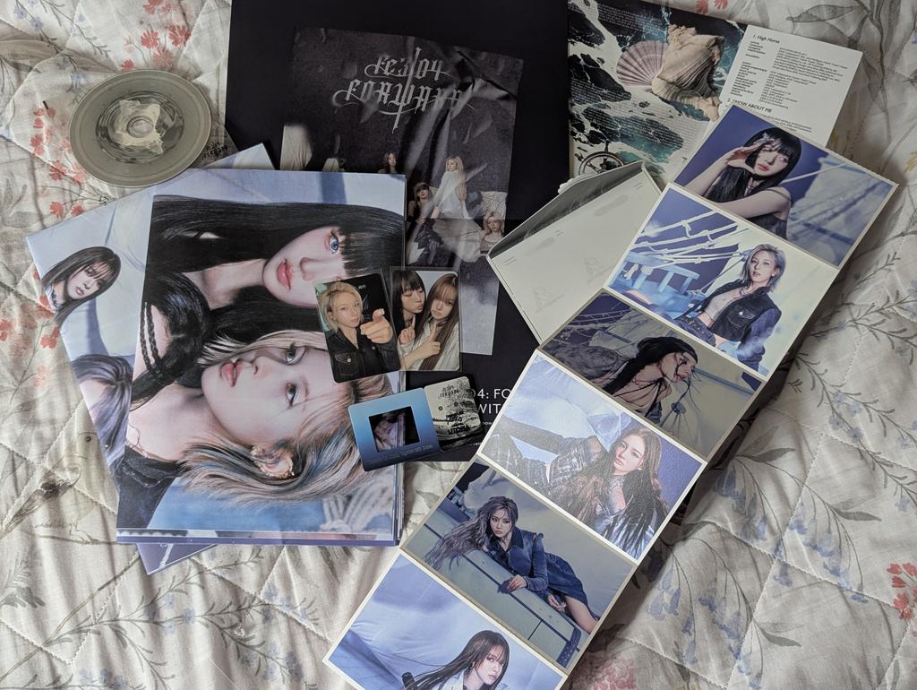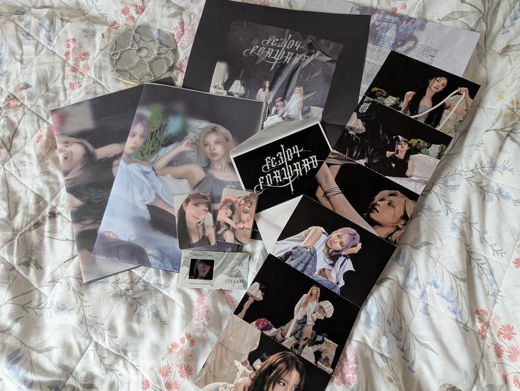 this is actually so cuute but the album's "photobook" being in this form... its so weird and inconvenient+ I can't even put it on the wall as the poster, as it is stapled together😭😭 the inclusions are so cool tho! but i don't understand why did they make 2 same posters when theres 2 concepts.... photocards are magnificent 💜💜 still can't believe i got the set for so cheap~