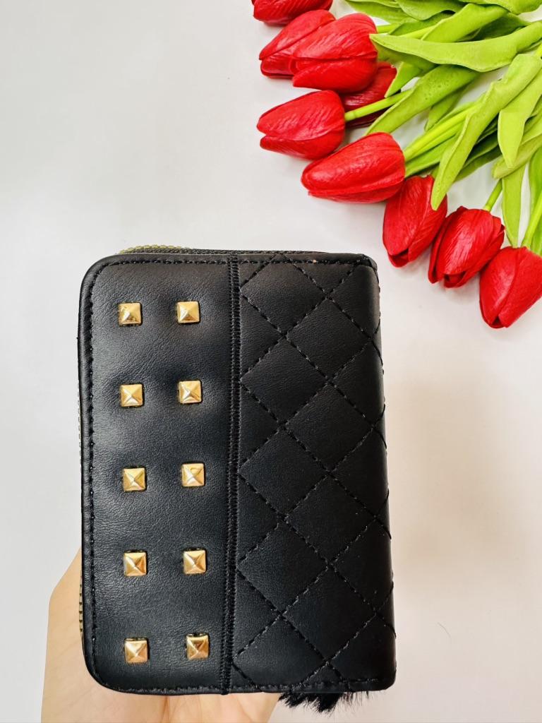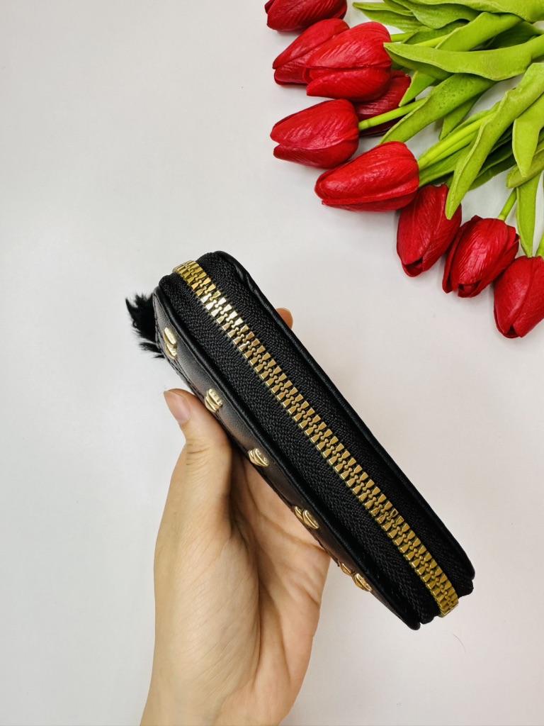 This fashionable wallet is highly versatile in terms of matching. Its classic black color and elegant yet edgy design make it suitable for a variety of outfits, from casual to formal wear. It is perfect for daily use, such as shopping, dining out, or commuting, as well as for more formal events where you need to carry your financial essentials in a stylish way.