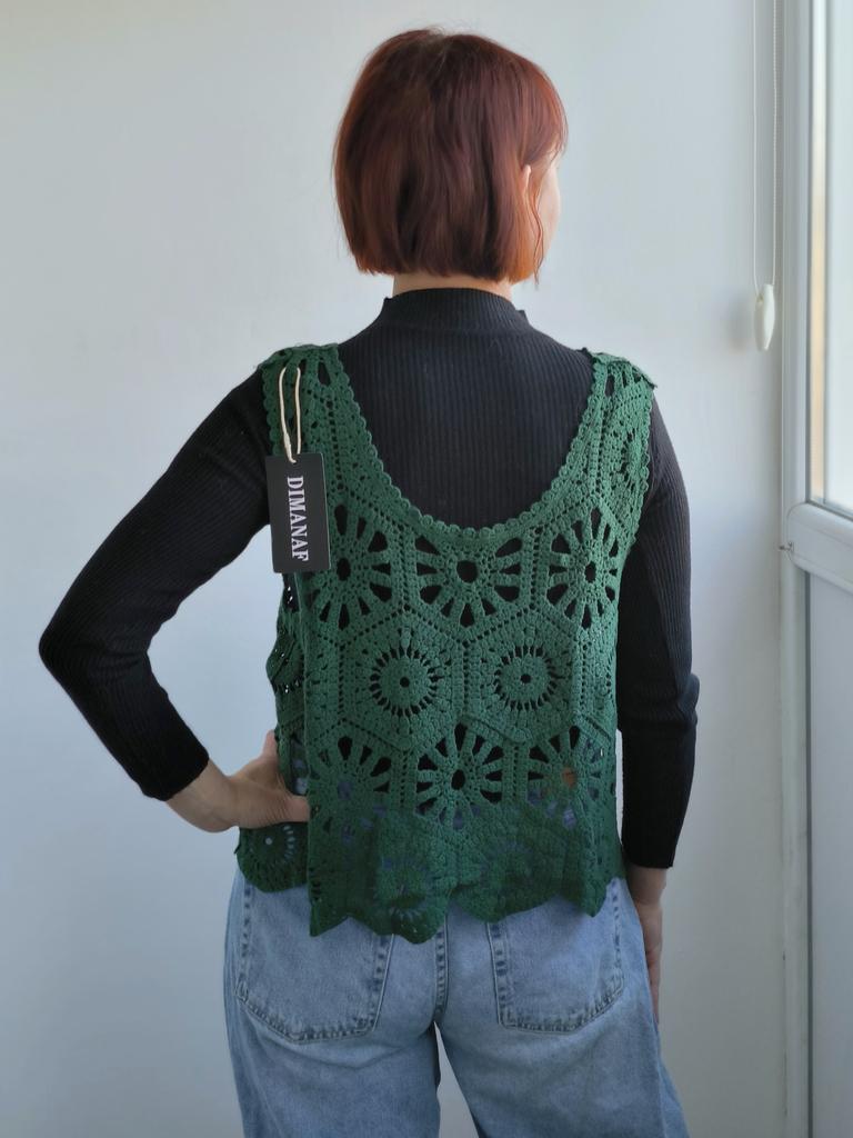 DIMANAF 2025 T-Shirt Women Knitting Lace Vest O-Neck Hollow Summer Style Basic Tops Tees Loose Clothing