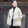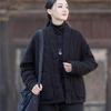 Johnature Women Chinese Style Button V-Neck Solid Color Coats Winter Pockets Coats