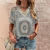 Boho Harajuku Women's T-Shirt Graphic Print Summer Short Sleeve Casual Tops Street Fashion V Neck T-Shirt Female Clothing T-Shirts Women’s