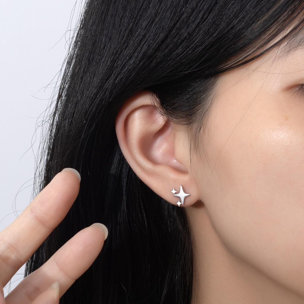 S925 Sterling Silver Tetragonal Star Stud Earrings Women'S Niche Design Star Asymmetric Earrings High-End Trendy Men'S Earrings