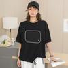 DIMANAF 2025 Summer Pocket T-shirt Women Printing Asymmetrical Full Sleeve Loose White Black
