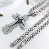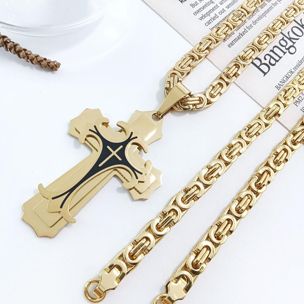 New Trendy Men's Titanium Steel Flat Section Necklace from Europe and America, Stainless Steel Oil Drop Cross Pendant