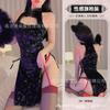 Domila Sex Underwear Embossed Gold Velvet Strap Split Fork Hollow Cheongsam Uniform Temptation Passion Set F037