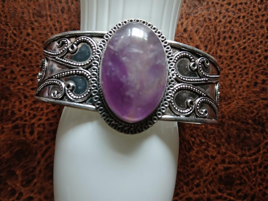 Natural Ametrine Gemstone 925 Sterling Silver Cuff Bangle Adjustable m0P39