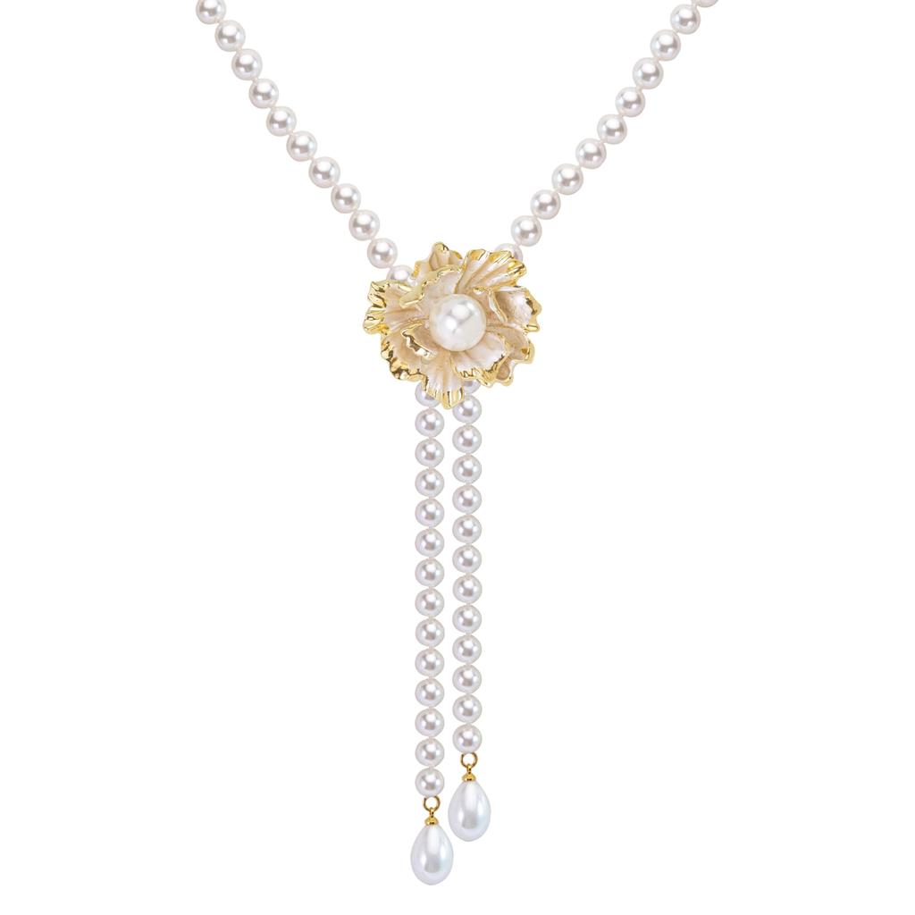 Pearl Long Pearl Adjustable Christmas Gift Ways To [Free Bird] Necklace, Necklace, Women's, Pearl, Gold, Peony, Flower, Necklace, Ceremony, Mother's