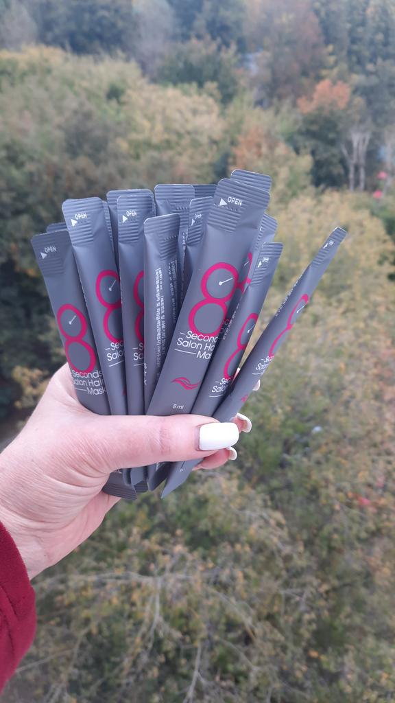 The 8-second Salon Hair Mask is a transparent ampoule high-concentration nutrition mask that turns into a cream type when mixed with water, nourishing damaged hair and helping to create elastic hair.