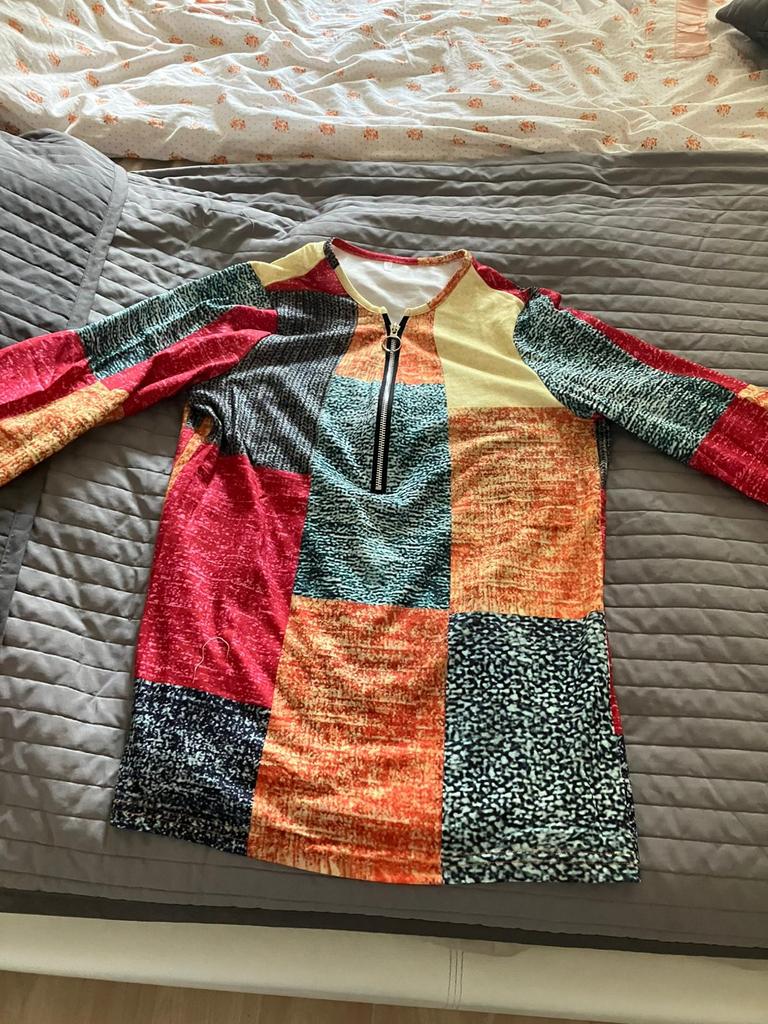 GMXIA Women's Fashion Casual Loose Print V-neck Zipper Long Sleeve Cashmere T-shirt