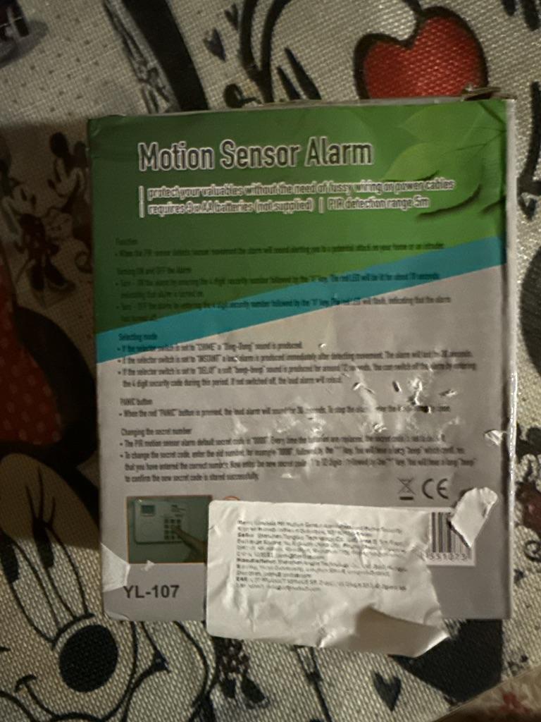 It features a built in PIR motion sensor that will activate the alarm if any movement is detected.
