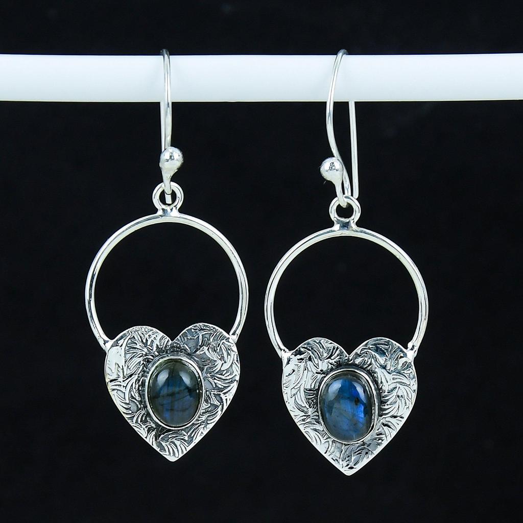 Natural Blue Flash Labradorite Gemstone Heart Shape Earrings, 925 Sterling Silver Earring, Handmade Boho Silver Jewelry Dangle Earrings, Wadding Gift