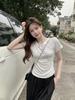 Introducing a stylish and modern addition to your summer wardrobe: this women's short-sleeve slim fit t-shirt. Crafted from a soft artificial silk material, it features a flattering pleated waist design that accentuates your silhouette. The solid color and round neckline offer a clean and versatile look, while the back hollow detail adds a touch of intrigue and elegance. Perfect for casual outings or elevating your everyday style, this t-shirt is sure to become a favorite go-to piece.