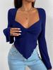 T-shirt Vacation V-neck Flared Sleeve Waisted Irregular Knit Long-sleeved T-shirt Tops